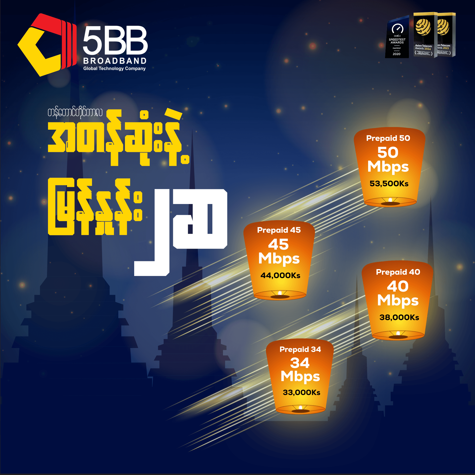🚀 𝐏𝐫𝐞𝐩𝐚𝐢𝐝𝟓𝟎 Plan ကို အမြန်နှုန်း 𝟓𝟎 𝐌𝐛𝐩𝐬 ကို တစ်လ 𝟓𝟑,𝟓𝟎𝟎ကျပ် + 𝟏𝟓% 𝐜𝐨𝐦𝐦𝐞𝐫𝐜𝐢𝐚𝐥 𝐭𝐚𝐱
