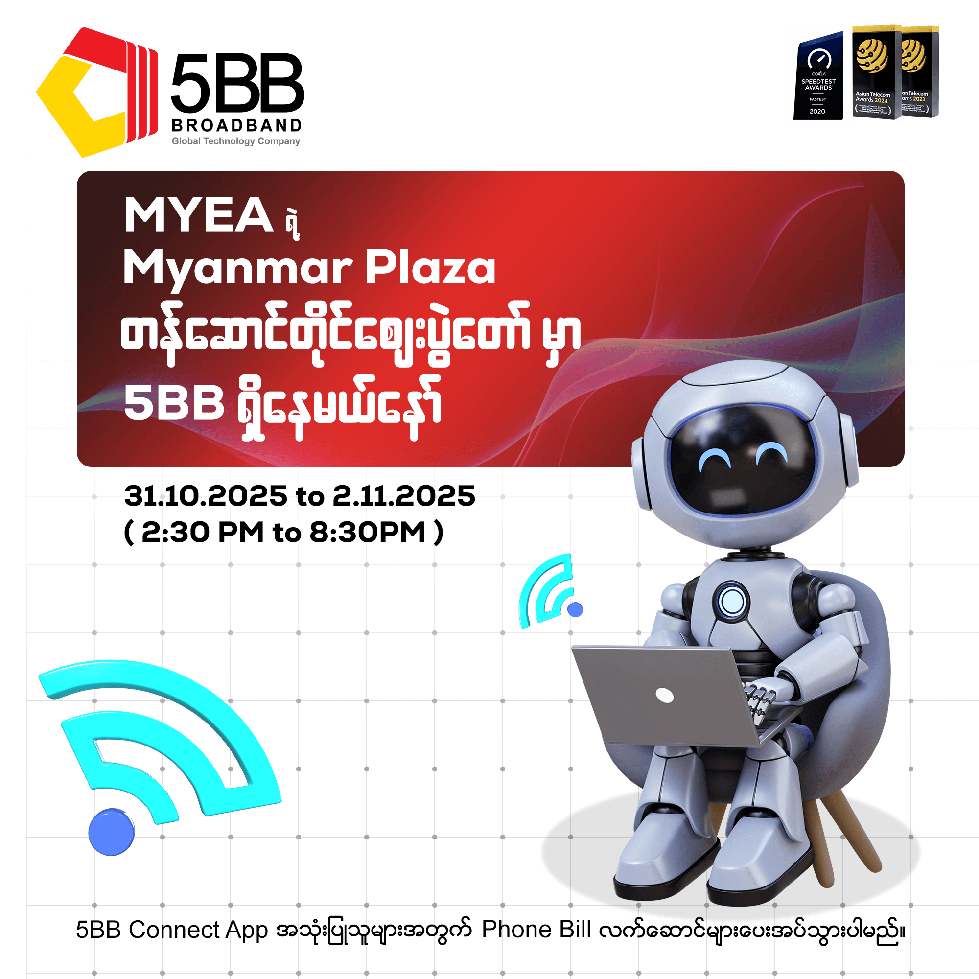 ဒီနေ့ ၃၁ ရက် ကနေ စပြီး ၂ ရက်နေ့ အထိ 5BB Broadband ရှိနေမှာပါနော်......