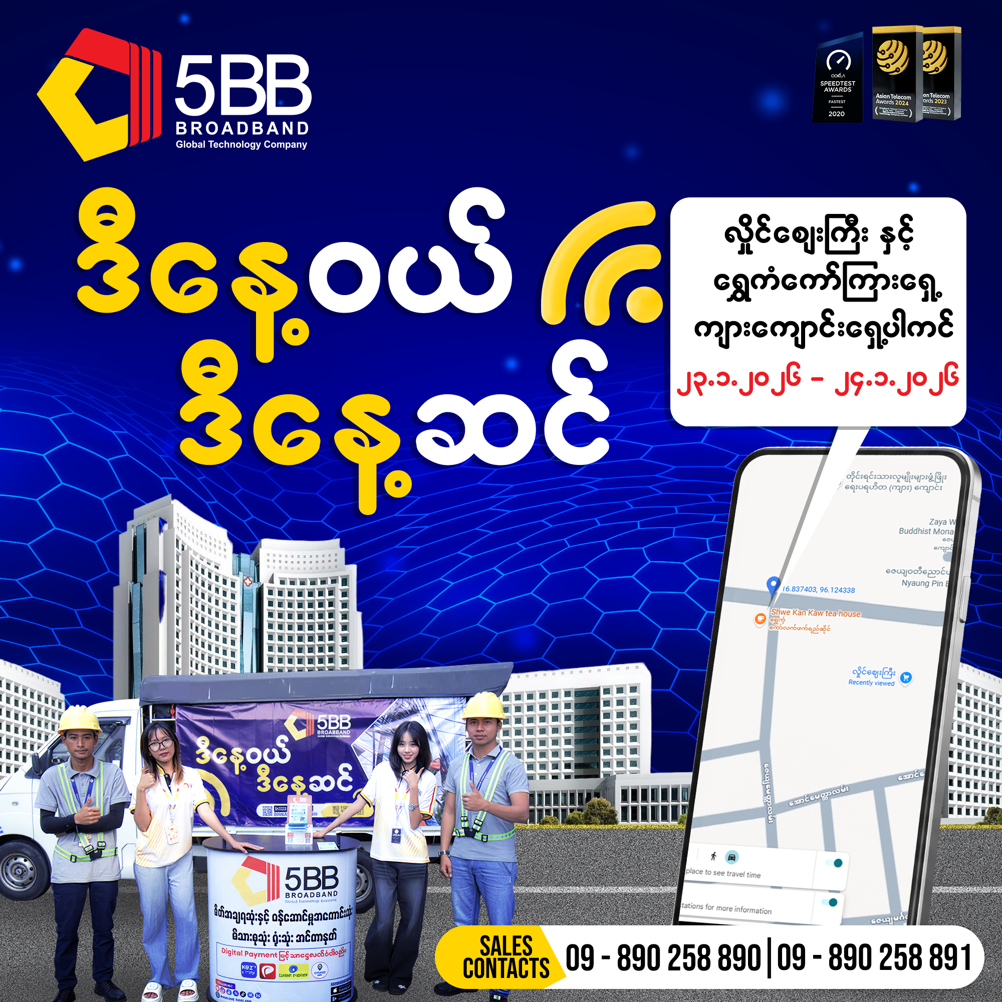 အင်တာနက် လိုအပ်ချက်ကို အချိန်ဆွဲမနေဘဲ ချက်ချင်းဖြည့်ဆည်းပေးဖို့ ကျွန်တော်တို့ရဲ့ အရောင်းဝန်ထမ်းတွေနဲ့ နည်းပညာအဖွဲ့တွေက အသင့်စောင့်ကြိုနေပါတယ်။