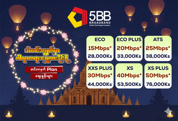 5BB Broadband ကို ယုံကြည်စိတ်ချစွာ သုံးစွဲလျှက်ရှိသူများအားလုံးကို အထူးကျေးဇူးတင်အပ်ပါသည်။