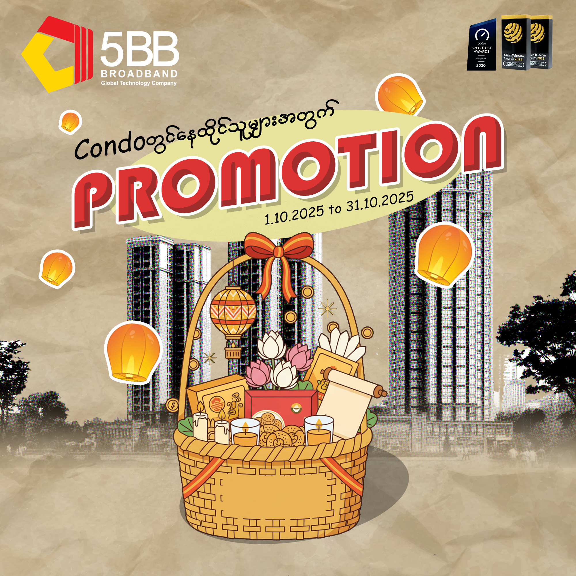 မိသားစုနှင့် နီးကပ်စွာရှိရမည့် သီတင်းကျွတ်မှာ အကွာအဝေးဆိုတာကို ကျော်လွှားမယ့် 5BB Broadband Condo & Housing Fiber Internet